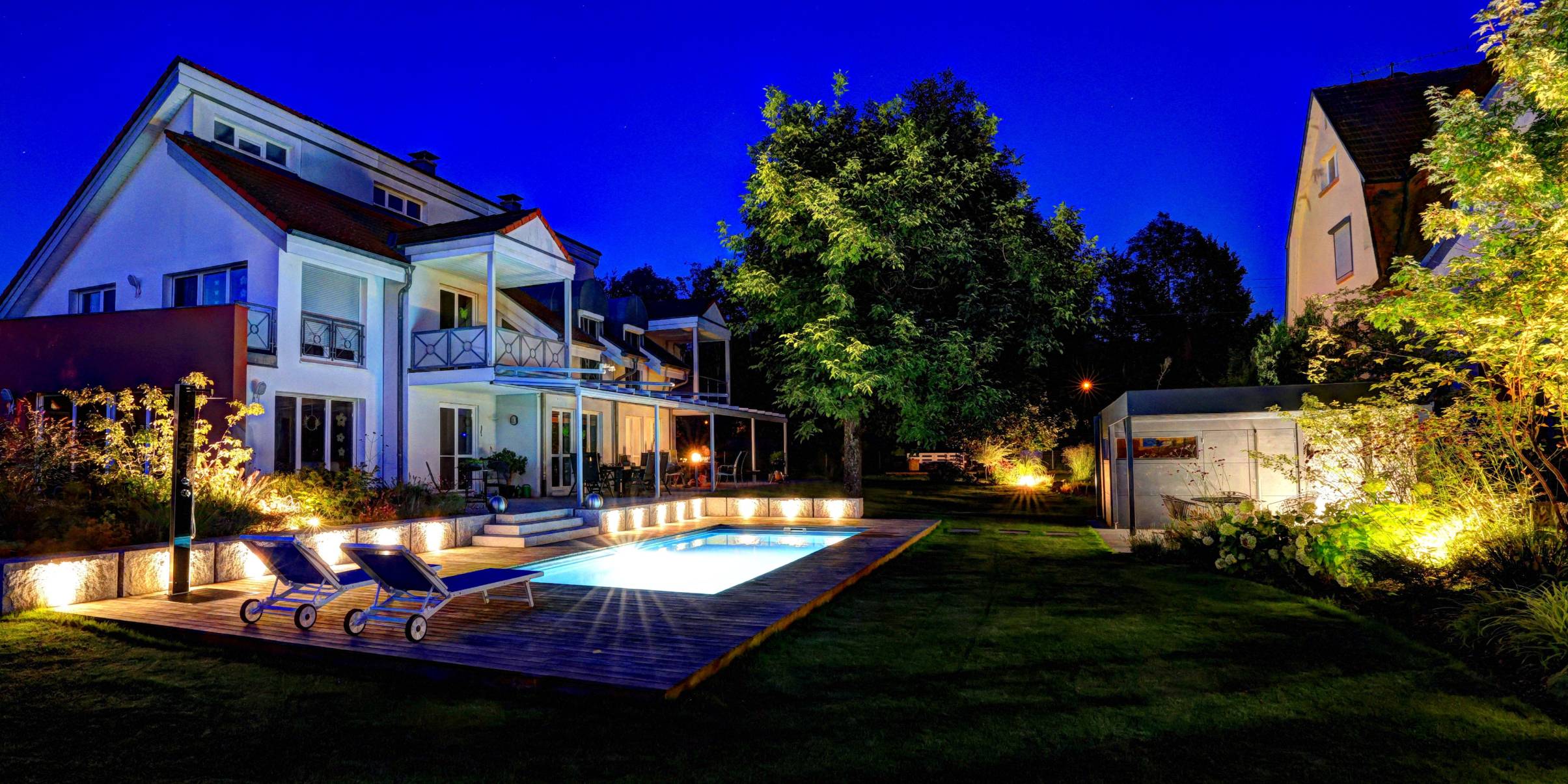 Stimmungsvolles Licht verwandelt Ihren Garten in einen besonderen Ort – auch nach Sonnenuntergang. Wir setzen gezielte Beleuchtungskonzepte um, die Wege, Pflanzen, Mauern und Wasserflächen perfekt in Szene setzen. So entsteht ein harmonisches Zusammenspiel aus Funktion und Atmosphäre, das Sicherheit bietet und gleichzeitig ein einzigartiges Ambiente für entspannte Abende im Freien schafft.